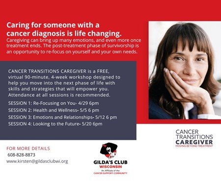 Cancer Transitions® for Caregivers is a free, 4-week workshop designed to help you move into the next phase of life with skills.