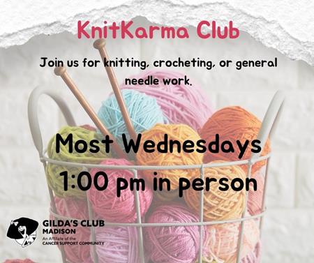 KnitKarma Location: Gilda's Club (7907 UW Health Ct, Middleton, WI 53562)